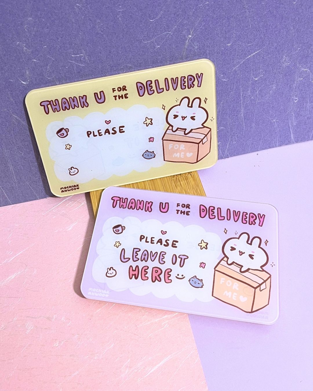 Side 2: "Thank you for your delivery" with a writable section – Got special instructions? Use a whiteboard marker to personalize it! Whether it’s “leave by the gate,” “hide behind the plant,” or “don’t wake the baby,” this side lets you communicate exactly what you need.